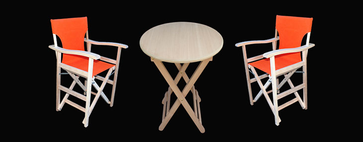 Όπως: Καρέκλες - Τραπέζια - Σκαμπό - Καρεκλάκια - Πολυθρόνες Σκηνοθέτη - Ξαπλώστρες (Sez Long) -